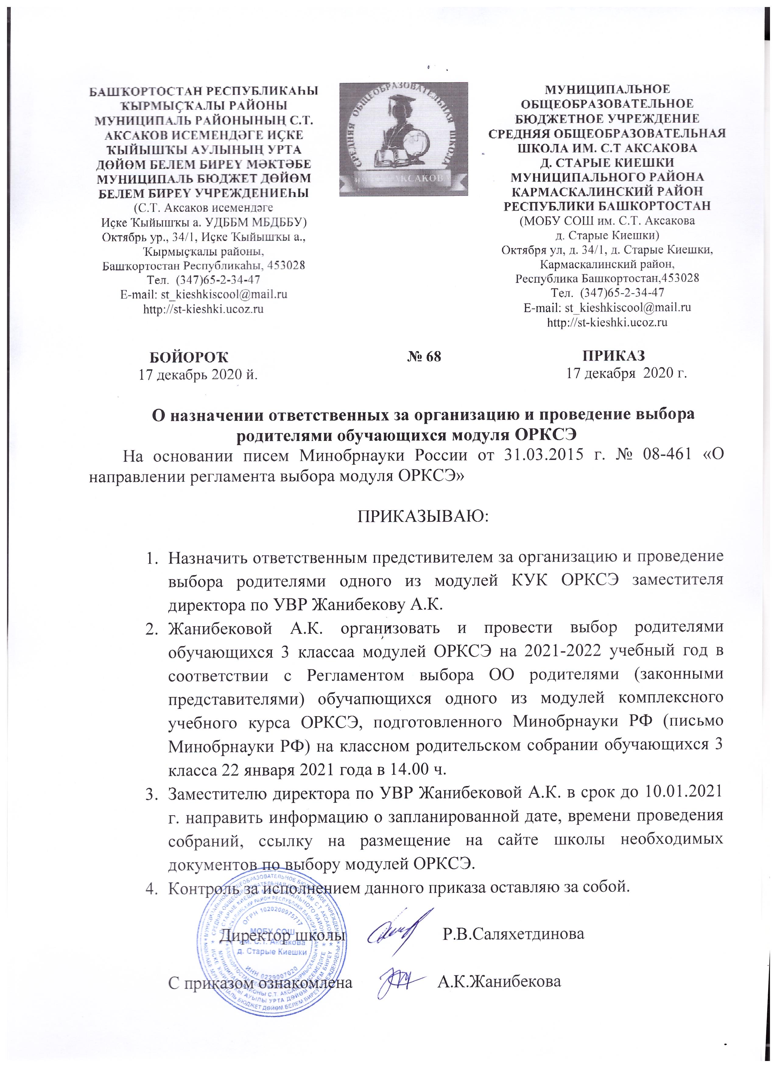 Выбор одного из модулей комплексного учебного курса «Основы религиозных культур и светской этики».